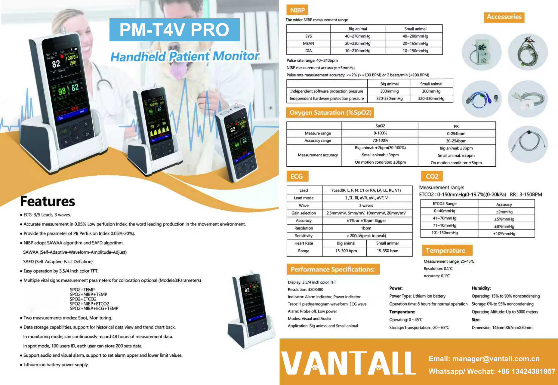 PM-T4V PRO Veterinary Handheld Monitor